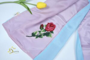 2 Color Silk Embroidery – Khăn Lụa Tơ Tằm Thêu Hoa Hồng Đỏ