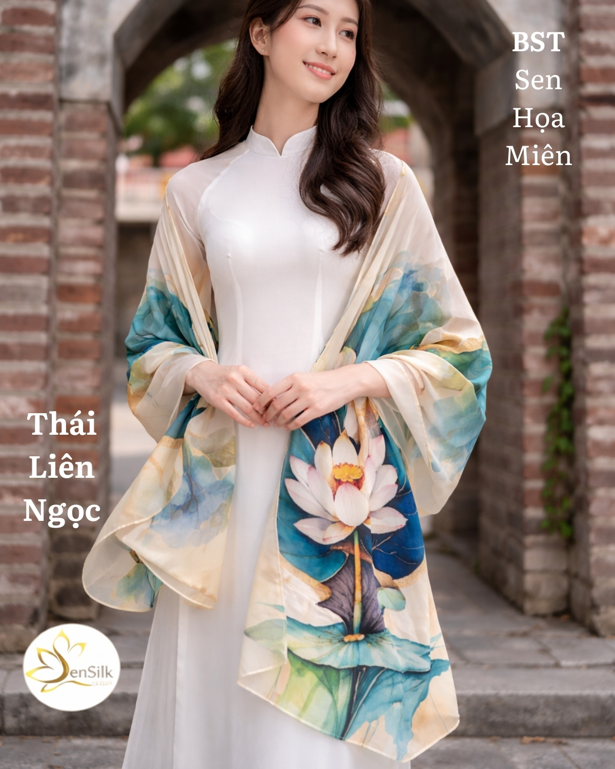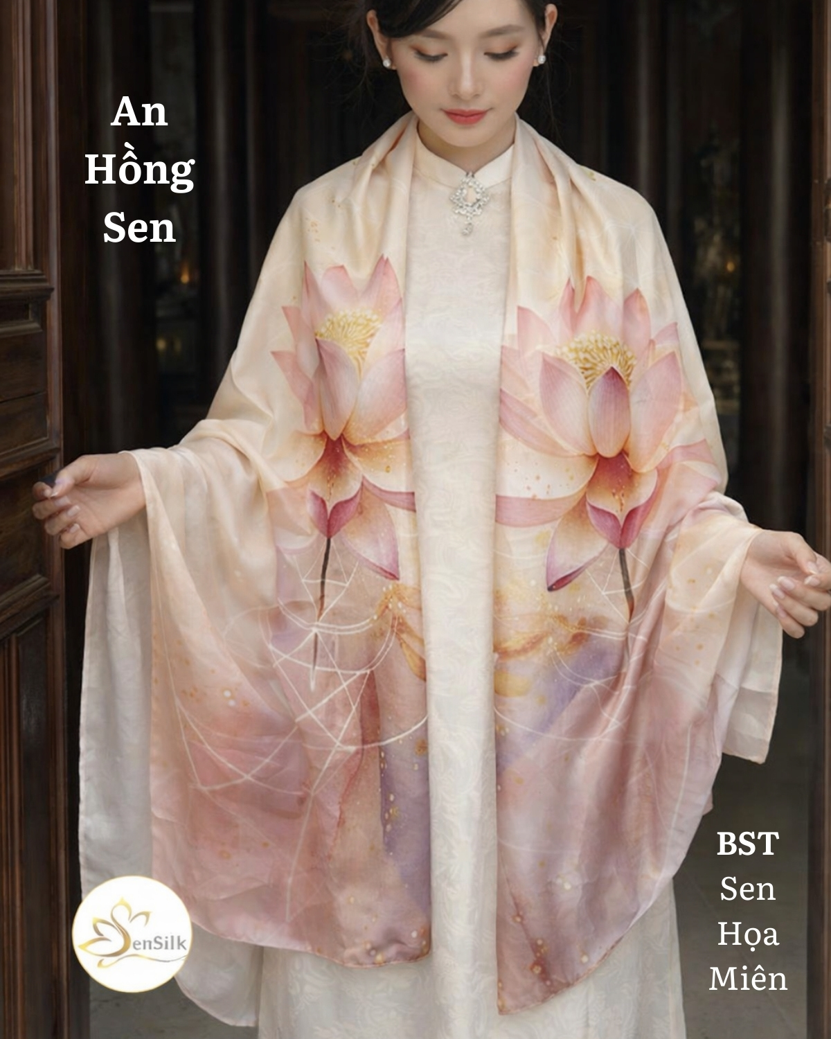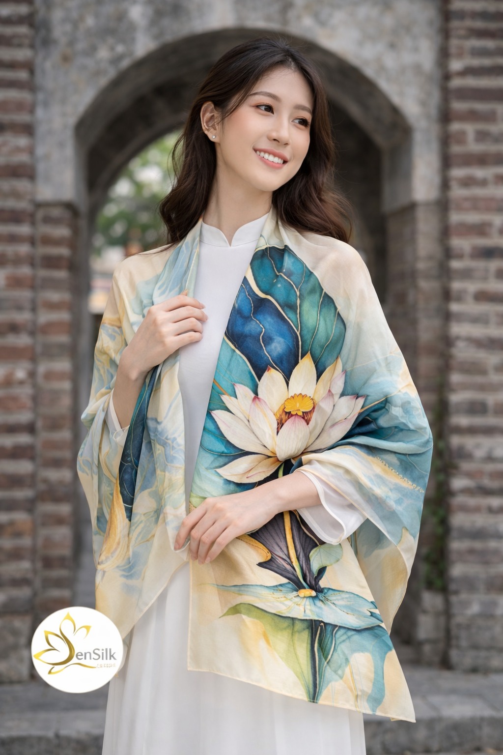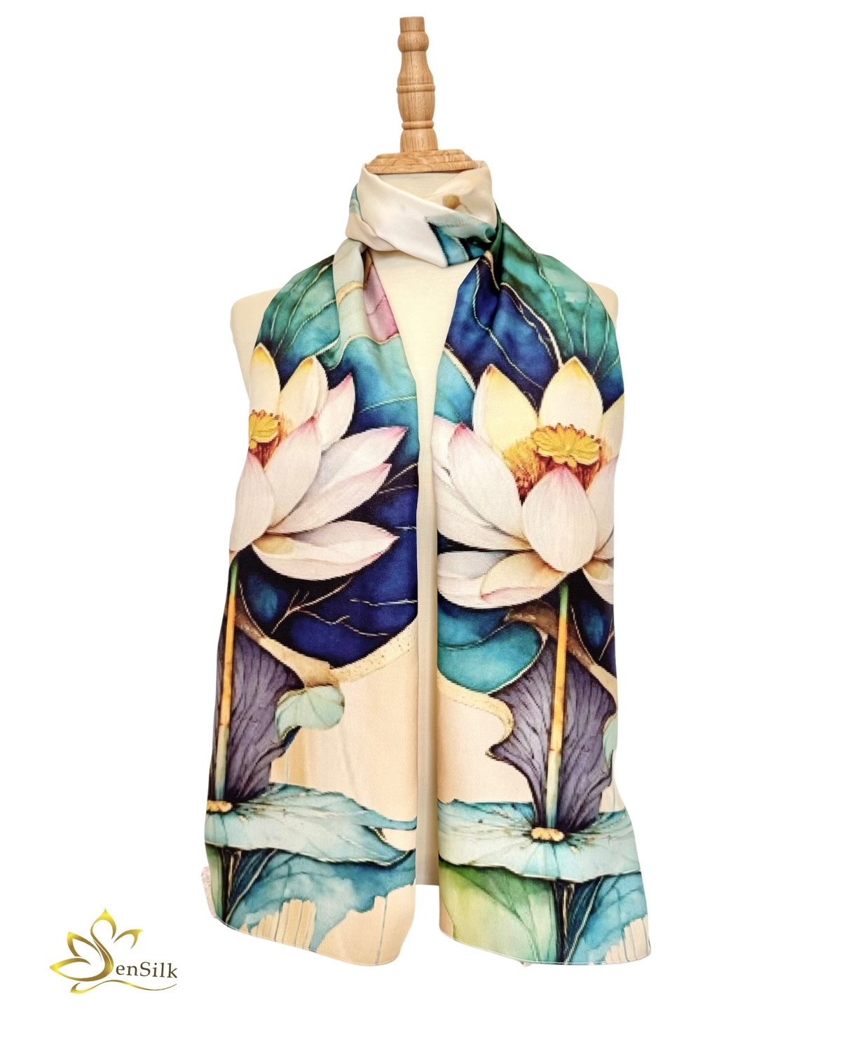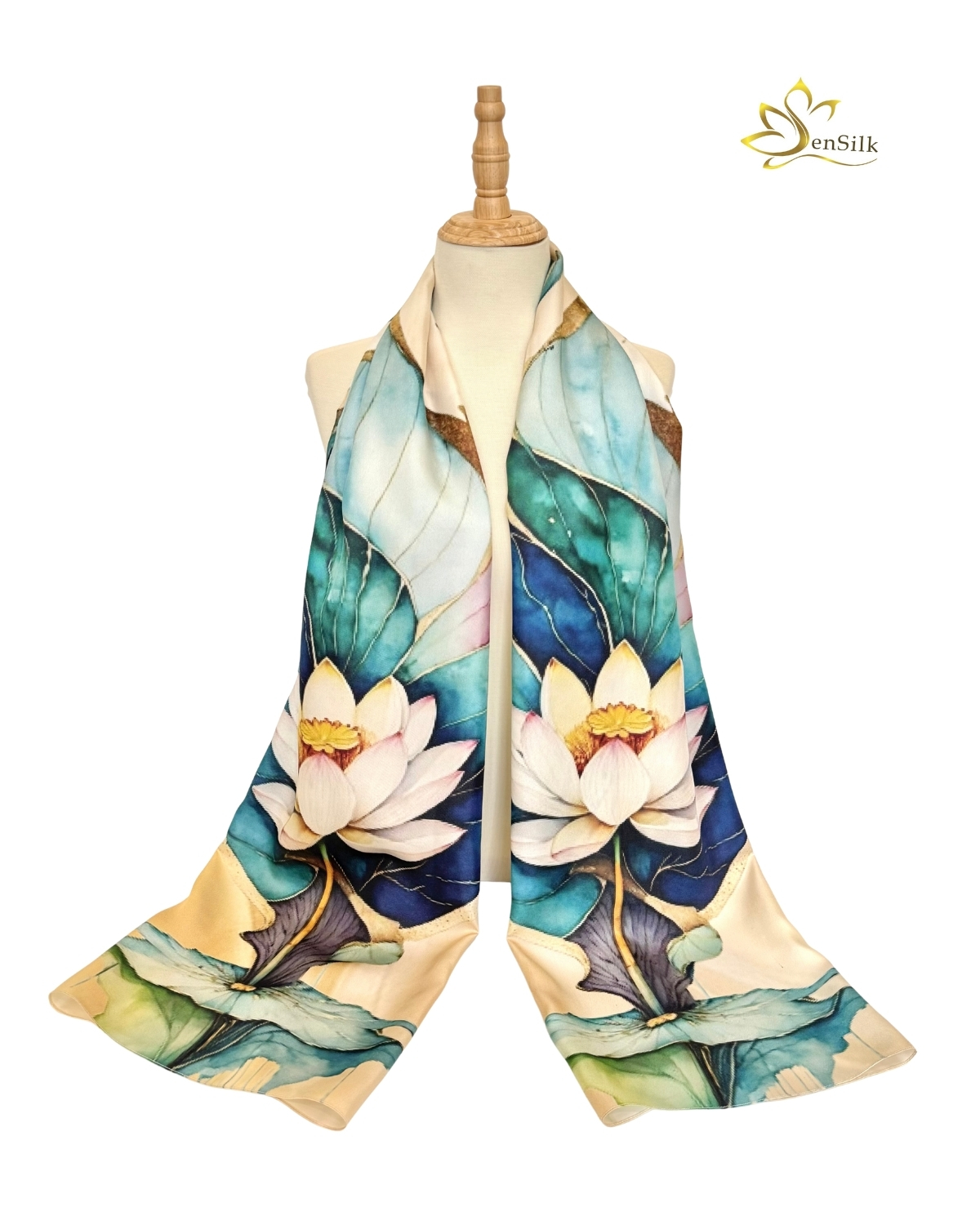Khăn Choàng Lụa Tơ Tằm In 3D Hoa Sen Thái Liên Ngọc 180x62cm – SenSilk