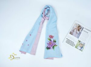 Vietnamese Silk Embroidery – Khăn Tơ Tằm Thêu Tay Hoa Cúc