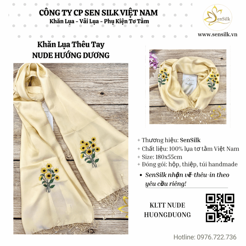 #SenSilk #KhănLụaThêuTay #HoaHướngDương #QuàTặngSangTrọng #LụaTơTằm #SenSilkVietnam