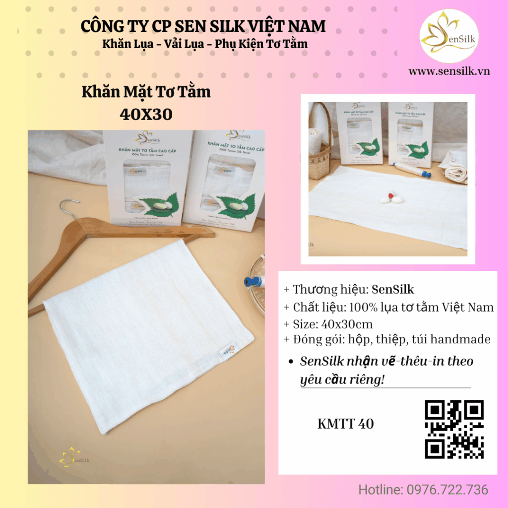 Bức hình giới thiệu Khăn Mặt Tơ Tằm của Công ty Cổ phần SenSilk Việt Nam mang đến cảm giác trong trẻo, thanh khiết và gần gũi. Bộ sản phẩm chiếc khăn 40x30cm, được dệt từ 100% lụa tơ tằm Việt Nam, mềm mại, thoáng khí và thân thiện tuyệt đối với làn da, kể cả da nhạy cảm.