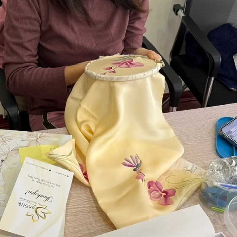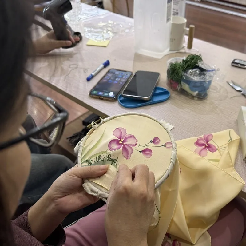 Quy trình tạo tác khăn lụa thêu tay SenSilk
