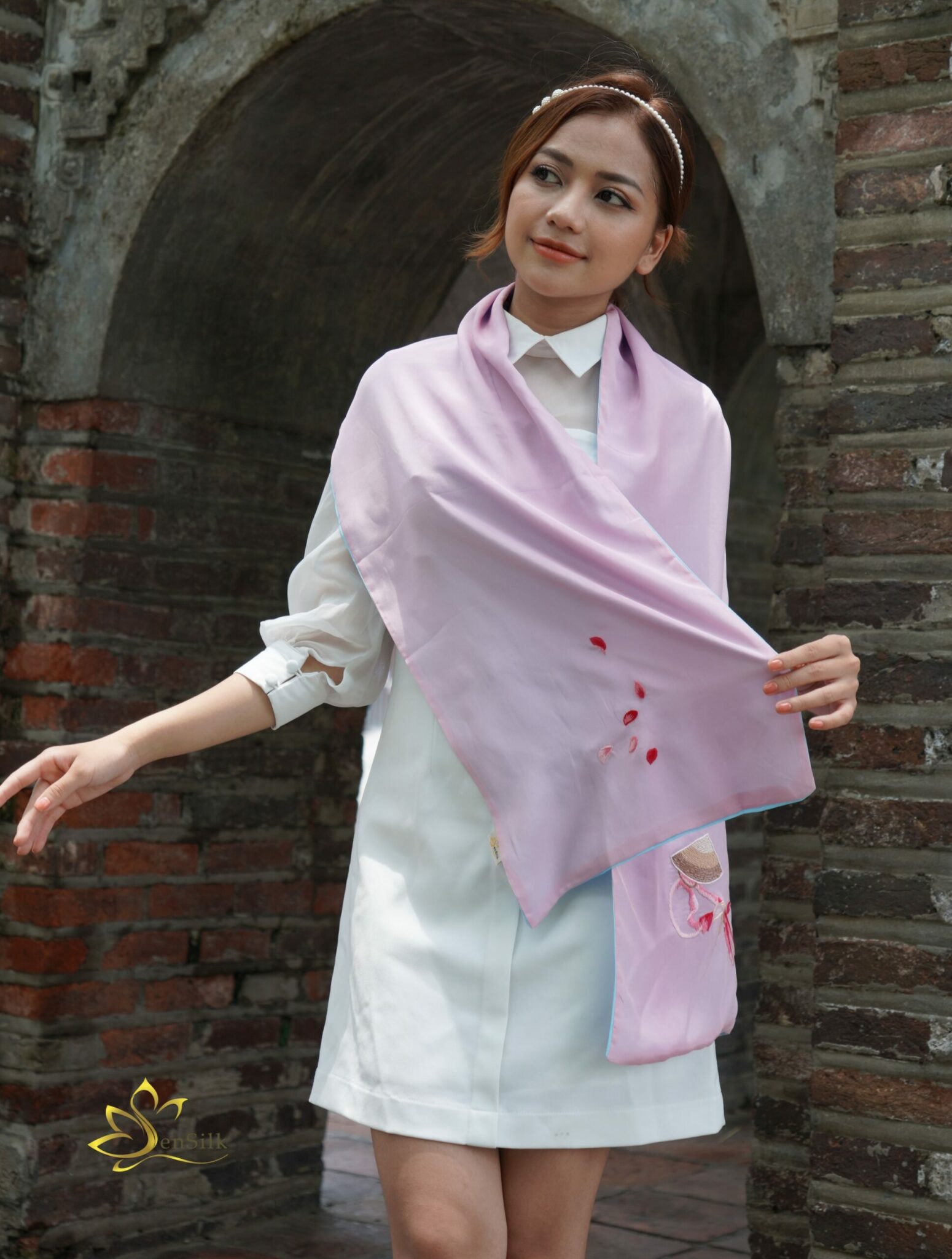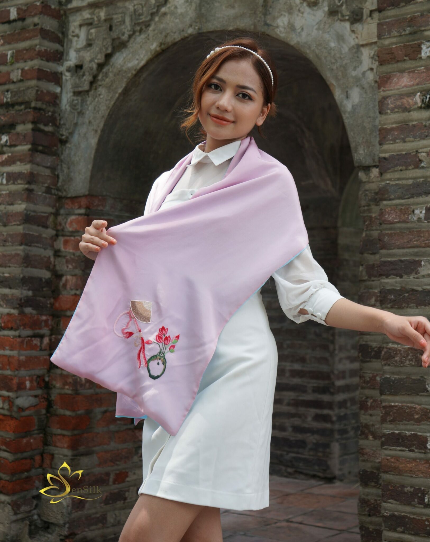 Khăn Lụa Tơ Tằm Thêu Tay Nón Lá Hoa Sen Việt Nam