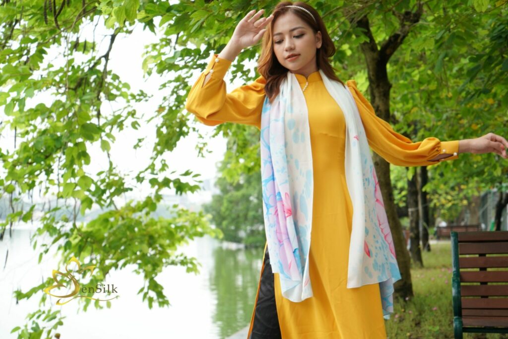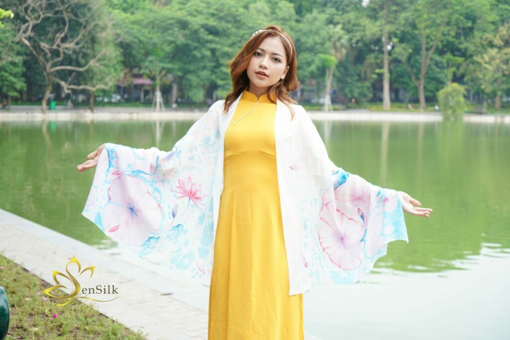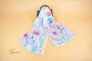 Khăn Lụa Tơ Tằm Thủy Ấn Vẽ Tay Hoa Súng – Tinh Hoa Lụa Việt