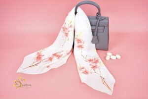 Khăn Lụa Vuông Vẽ Hoa Đào SenSilk – Quà Tết Cao Cấp