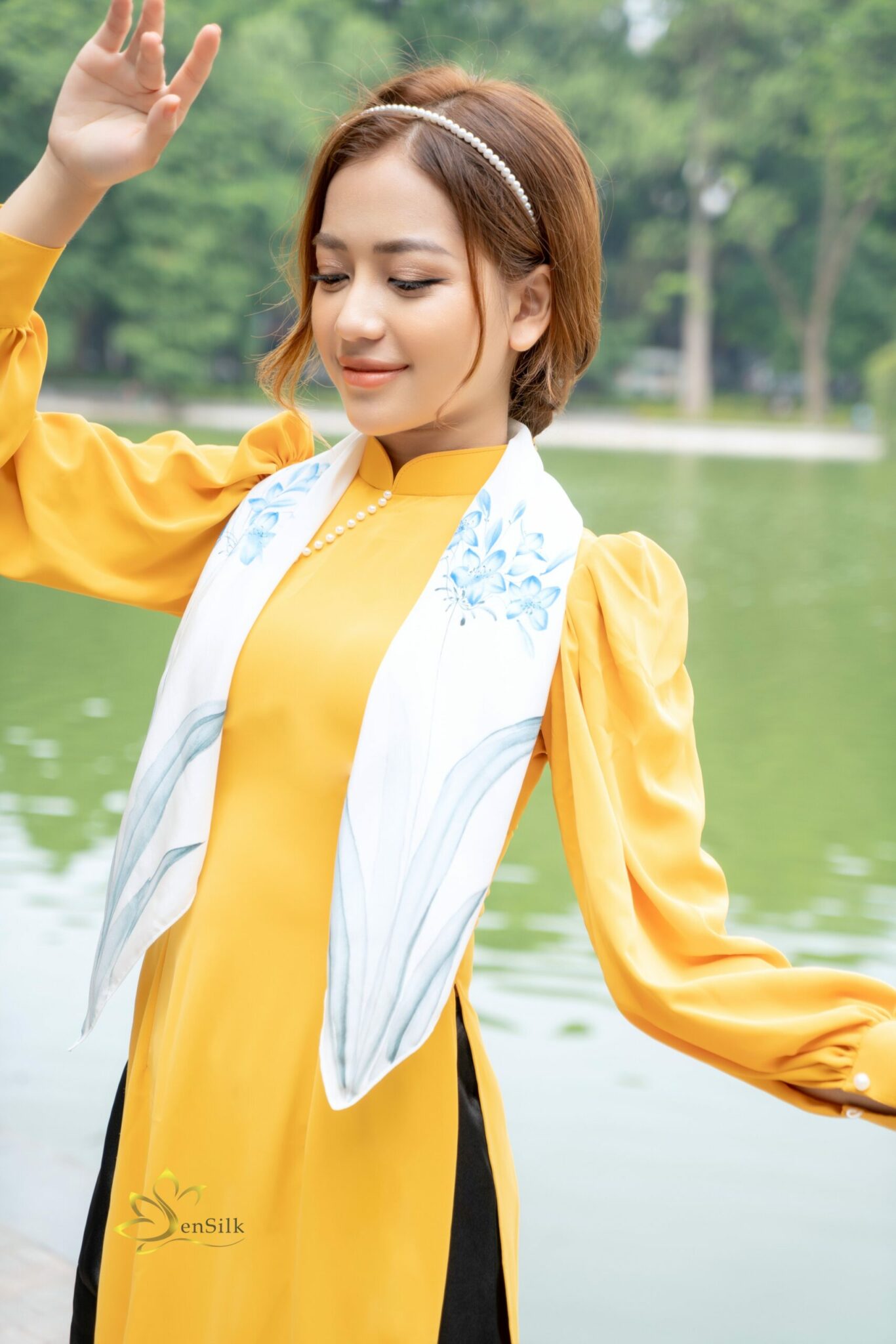 Khăn Lụa Vẽ Hoa Thủy Tiên – SenSilk – Silk Painting Scarves