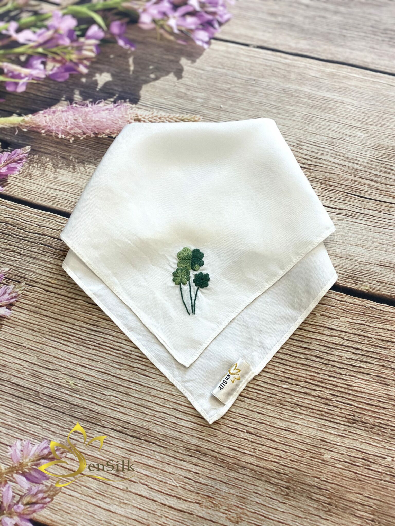 Quà Tặng Khăn Tay Thêu Cỏ 4 Lá – SenSilk