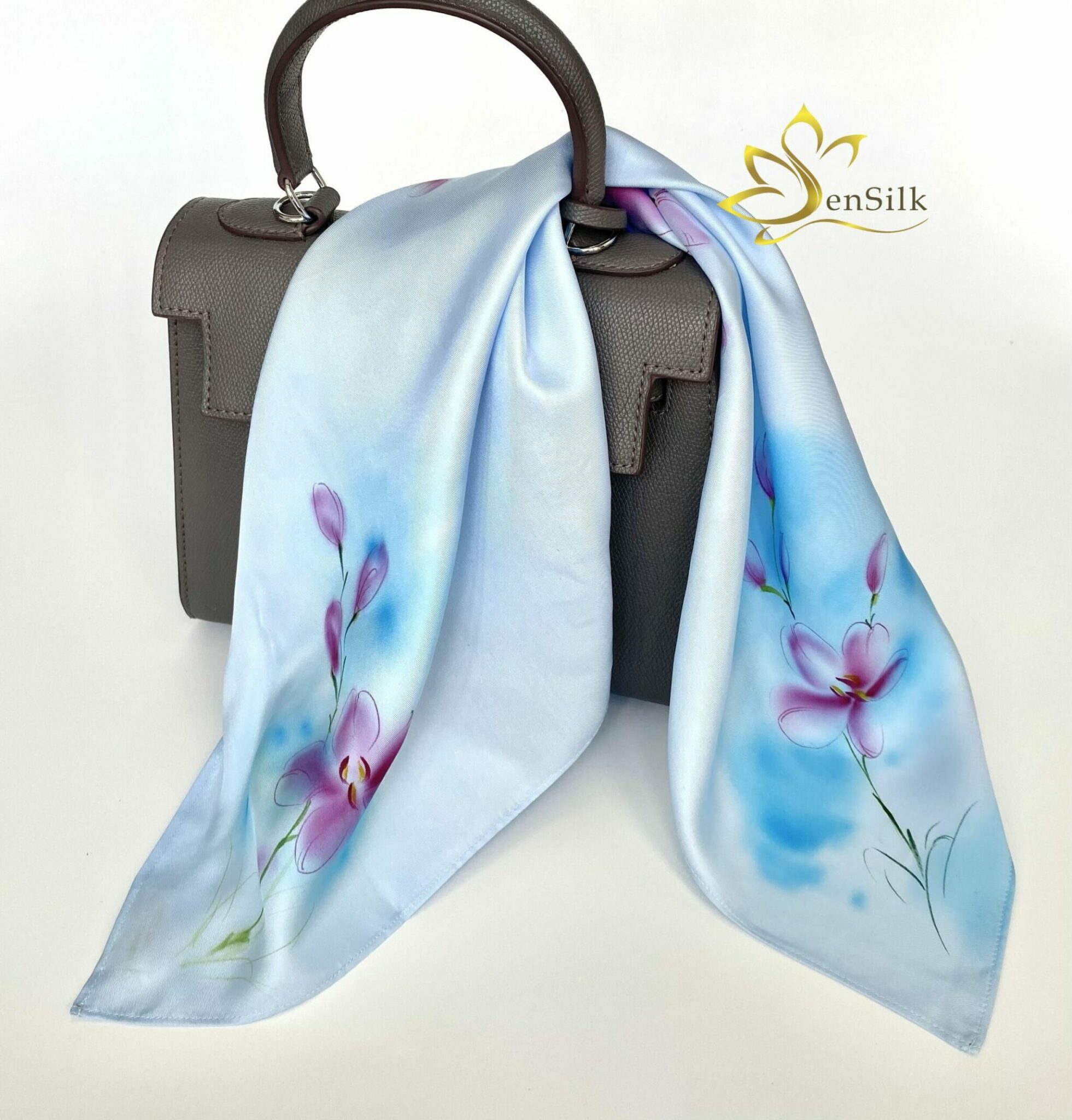 Khăn Lụa Thắt Nơ Vẽ Tay 3D SenSilk Hoa Lan