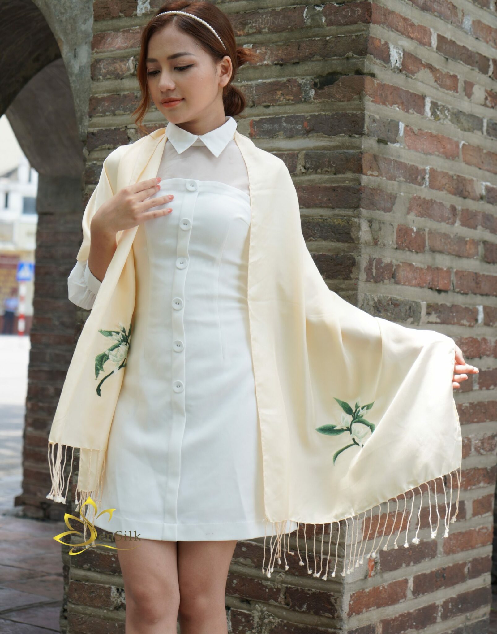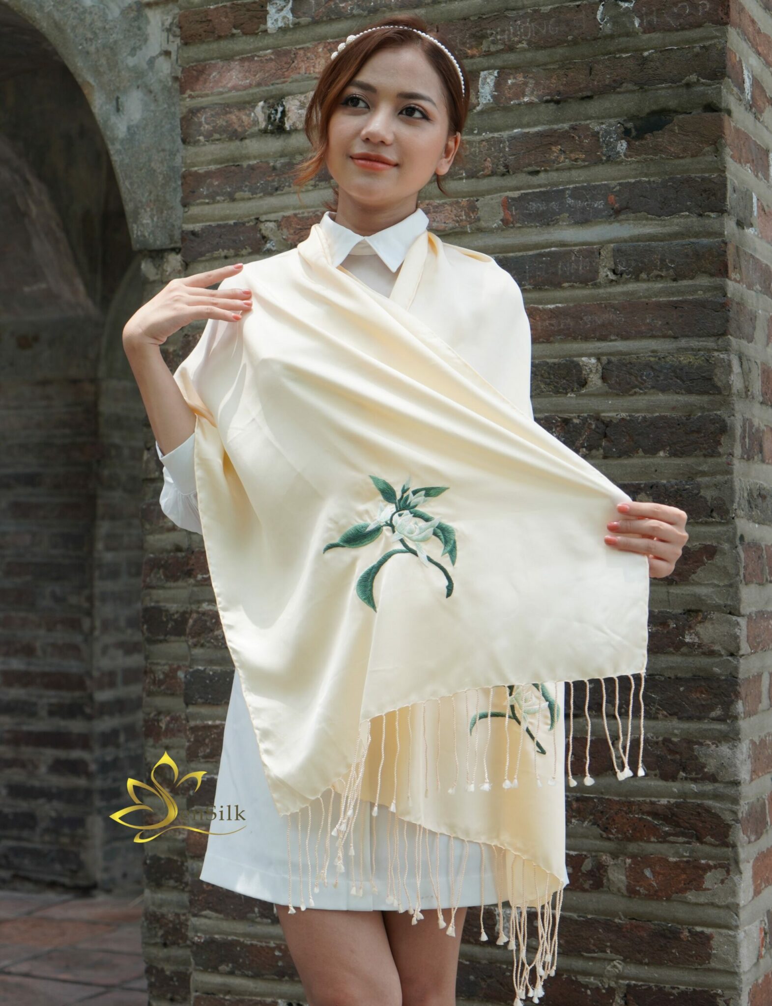 Khăn Lụa Thêu Tay Hoa Ngọc Lan SenSilk – Vietnam Silk Embroidery